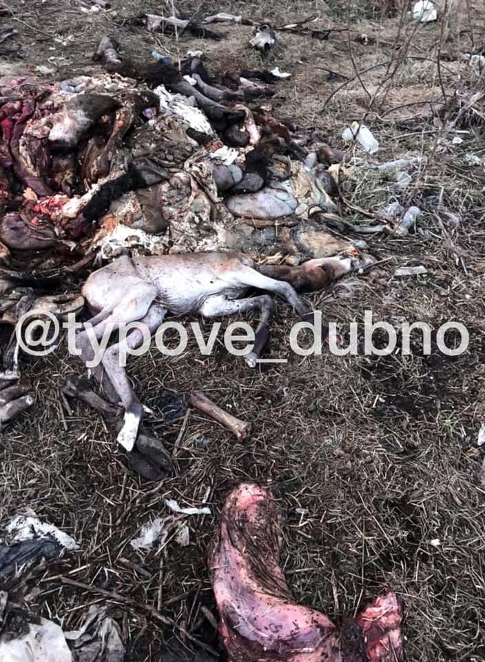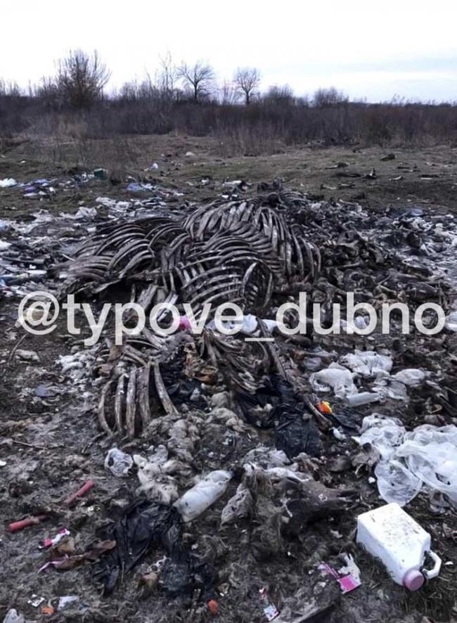 На Дубенщині між селами Молодаво та Мирогоща невідомий викинув кості та туші мертвих корів.