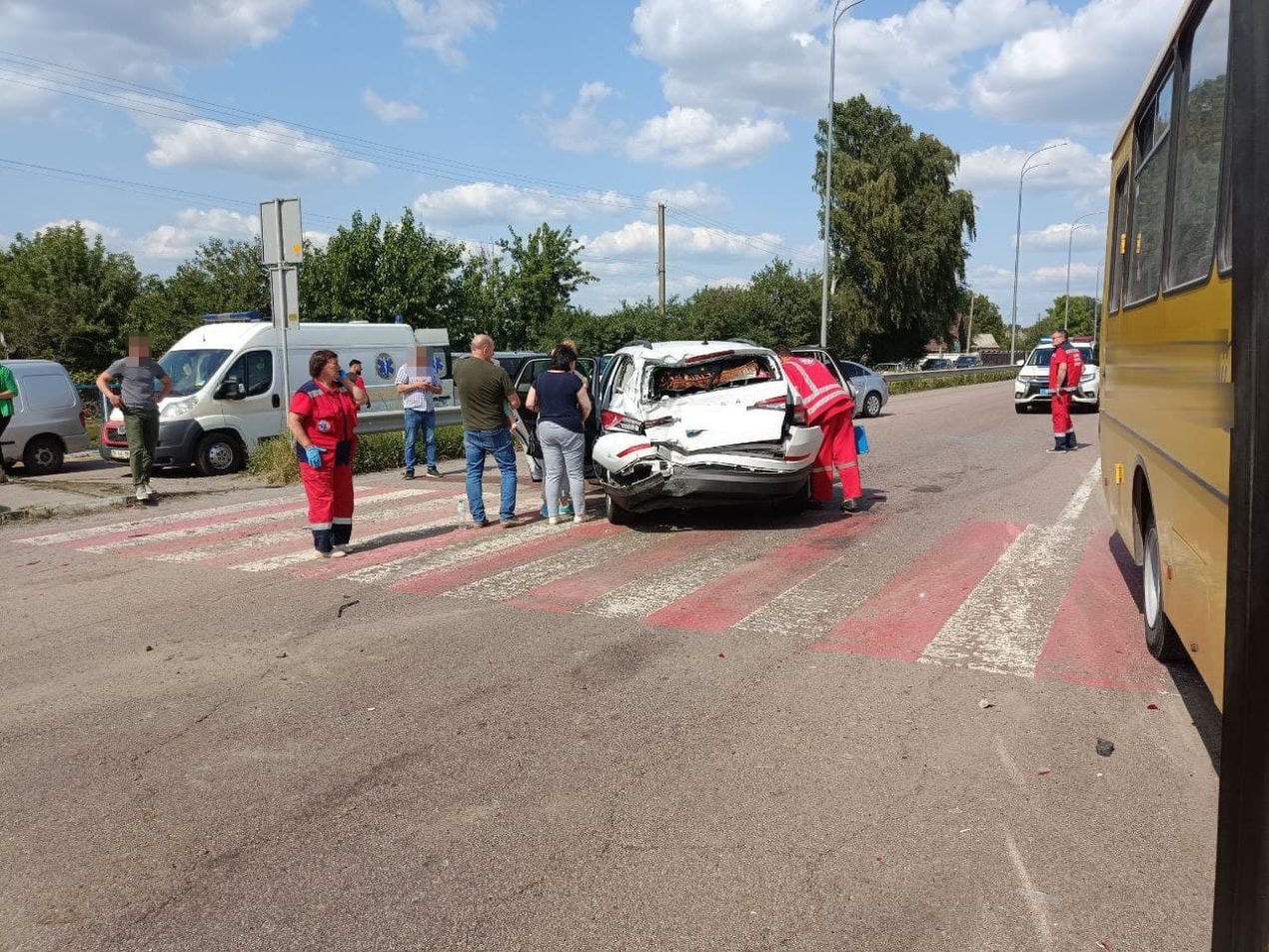 Унаслідок ДТП двоє пасажирів, чоловік і малолітня дитина, були доставлені до лікарні. За попередньою інформацією, вони отримали незначні травми.