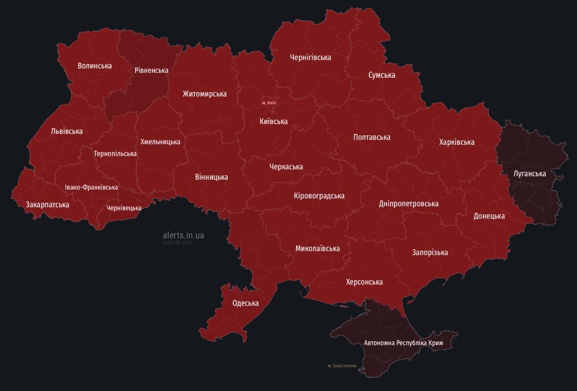 Повітряна тривога по всій території України