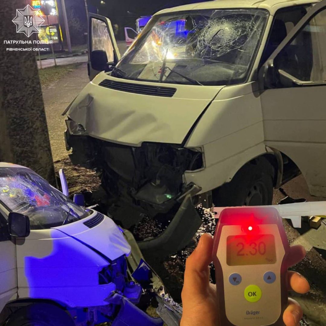 П’яний у дим: у Рівному водій із 2,3 проміле врізався в електроопору