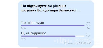 В нашій групі у Фейсбуці проголосувало найбільше людей – 674. З них 338 – підтримують Зеленського, 271 – не підтримують.