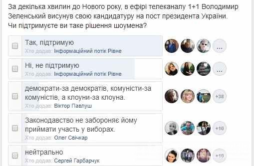 В нашій групі у Фейсбуці проголосувало найбільше людей – 674. З них 338 – підтримують Зеленського, 271 – не підтримують.