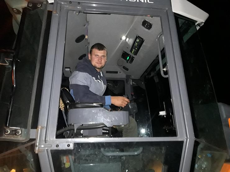 Будівельники ПрАТ “Рівнеавтошляхбуд” працюють навіть вночі, серед них — дорожній робітник Віктор Коваленко та машиніст катка Назар Лаврентьєв (на знімках). Кажуть, вночі зменшується потік транспорту, тож роботі ніхто не заважає.