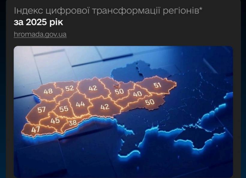 Рівненська область посіла четверте місце в Україні за Індексом цифрової трансформації за підсумками 2025 року.