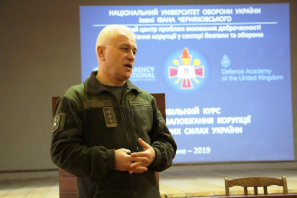 На виконання цього завдання за поточний рік відбулося тринадцять виїзних курсів. Також з травня по червень цього року мобільна група Національного університету оборони України імені Івана Черняховського разом із управлінням з питань запобігання і виявлення корупції Міністерства оборони України працювала з командирами рівня оперативно-тактичних угрупувань, а також керівниками Донецького й Луганського обласних військових комісаріатів в районі проведення операції Об’єднаних сил.