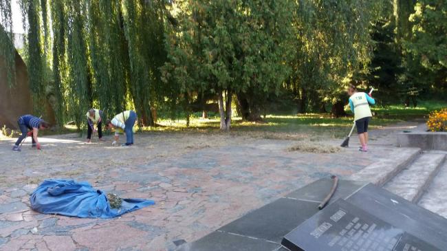 Працівники “Тресту зеленого господарства” здійснюють обрізку кущів, прибирають опале листя та облагороджують клумби у Рівному.
