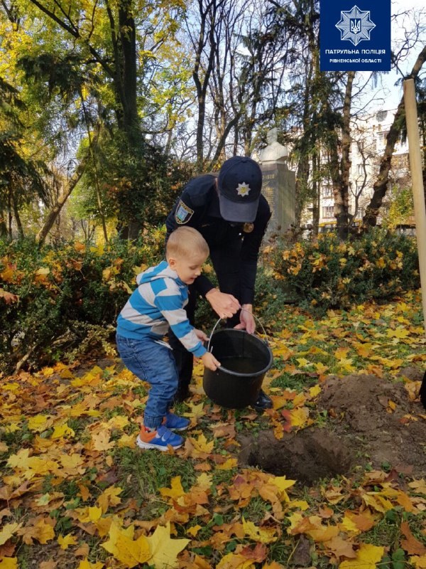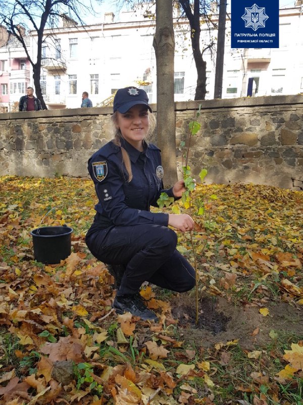 Клен, берізка, липа і дуб — цілу алею дерев посадили сьогодні рівненські патрульні в парку. Про це повідомляється на сторінці Патрульної поліції Рівненської області у Фейсбук.
