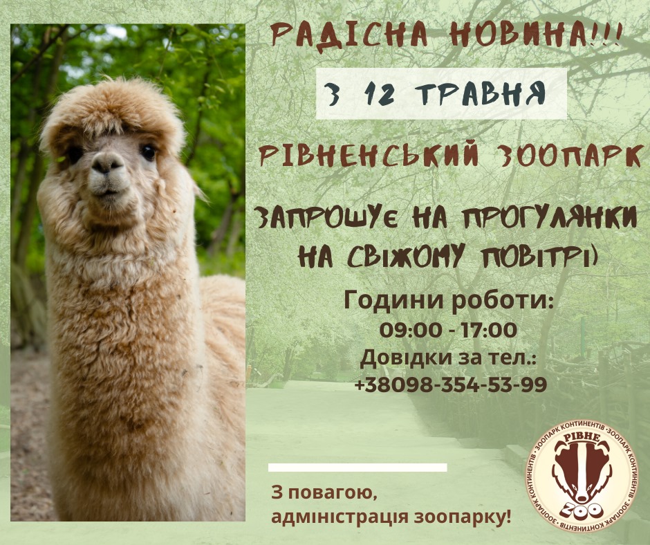 Нажаль, закритими для доступу поки залишаються акватераріум та торгівельні точки. Припинено проведення екскурсій. На вході в зоопарк та туалетах розміщенні ємності з антисептичними засобами для обробки рук. Розрахунок банківською карткою вітається.