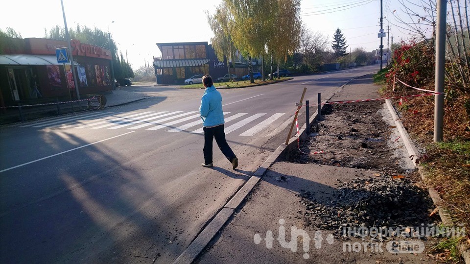 Також читач, щодня минаючи цю ділянку на автомобілі, помічає, що люди, які йдуть тротуаром, змушені виходити на проїжджу частину в обхід розритого асфальта, що створює небезпечну ситуацію на дорозі.