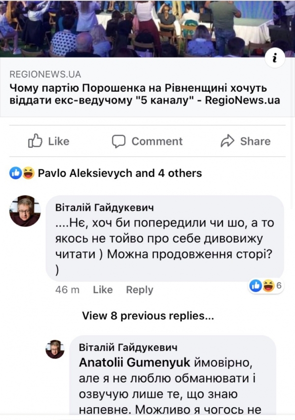 Який, до речі, у себе на ФБ у розмові з рівненським відомим журналістом Анатолієм Гуменюком щодо зазначеної статті дав зрозуміти, що для нього всі такі розмови – дивина, новина та несподіванка: