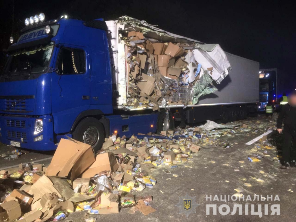 Раніше ми повідомляли, що після смертельної ДТП за участі двох вантажівок поблизу села Масевичі поліція перекрила рух. Йдеться про ділянку траси «Київ-Ковель-Ягодин». Там розчищали автодорогу від розкиданої внаслідок аварії продукції – кукурудзяних паличок.