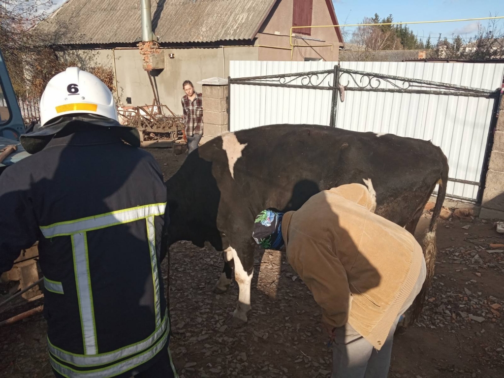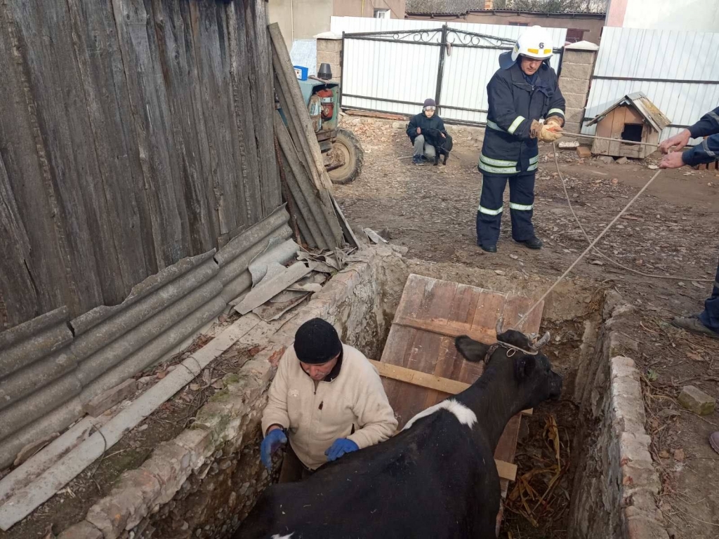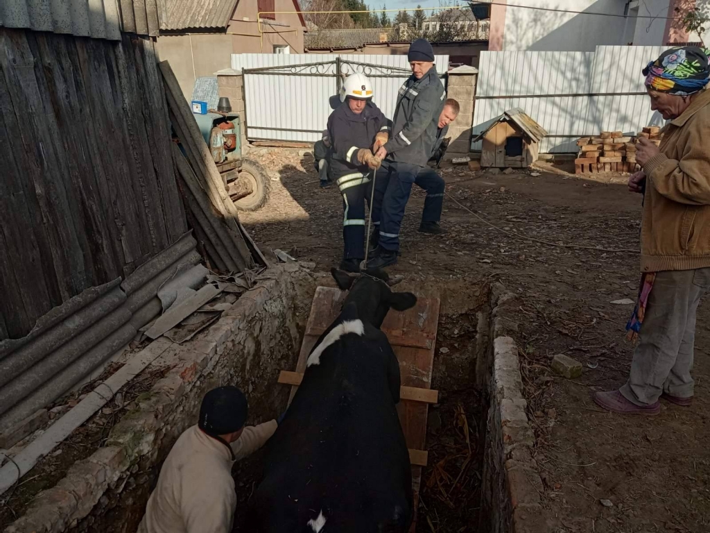 Рятувальники допомогли господарям дістати корову Чорнорябку, що впала в яму (ФОТО)