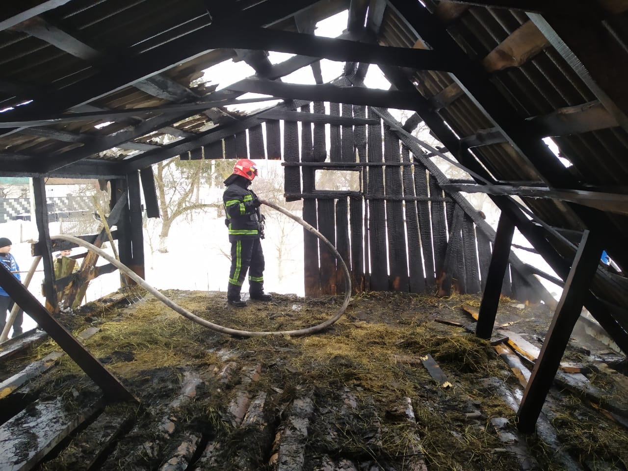 о 12:43 у приватному господарстві в селі Гвіздів на вулиці Шкільній Рівненського району вогнем було пошкоджено 32 м2 покрівлі господарчої будівлі.
