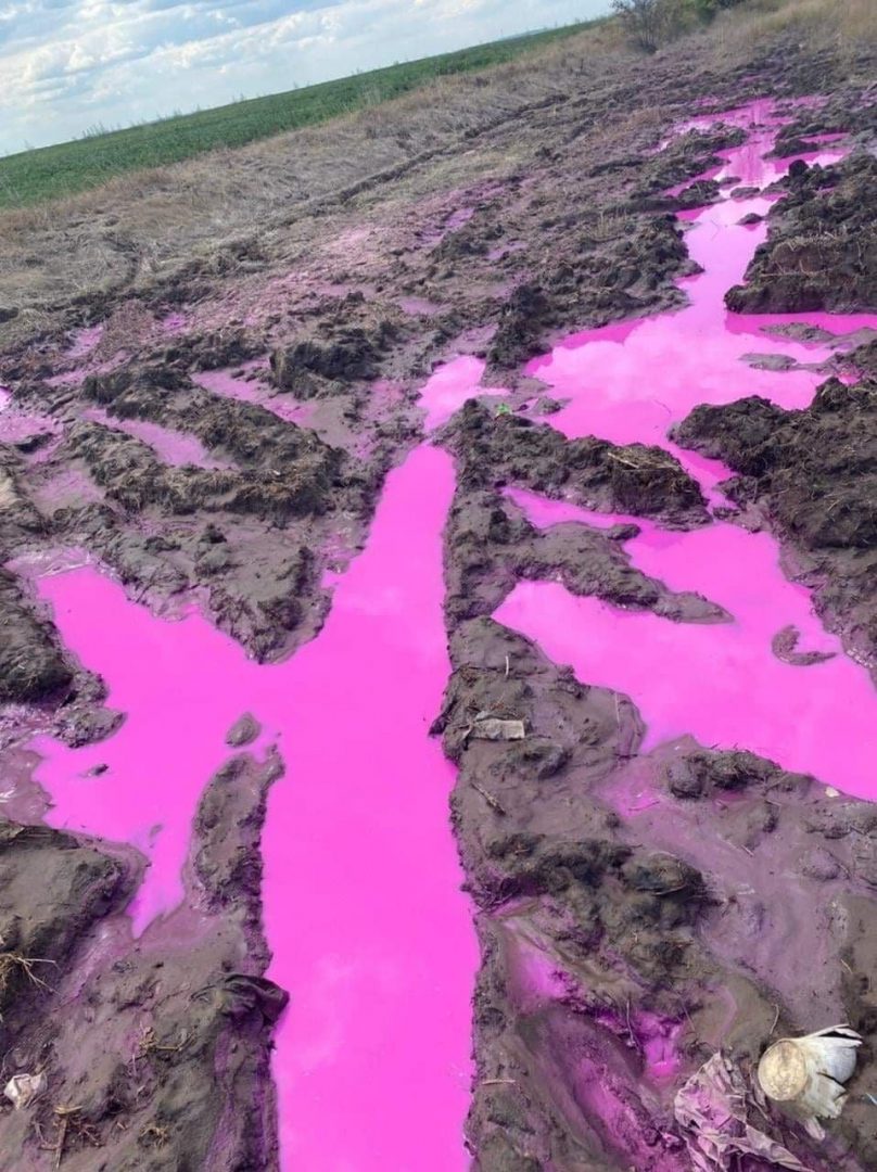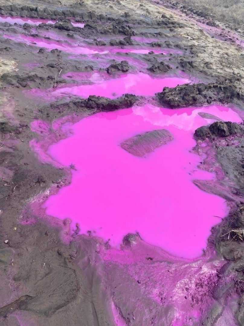 Поблизу Рівного у полі з’явилися калюжі з рідиною рожевого кольору. Це 22 липня помітив житель села Колоденка. Ділянка розташована в полі на шляху від Колоденки до М’ятина Рівненського району.