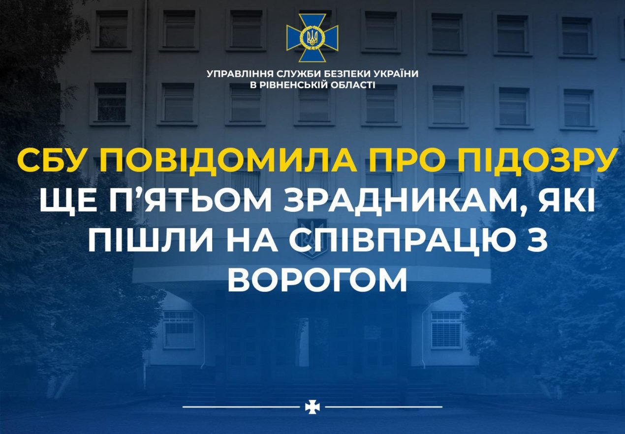 Служба безпеки України в Рівненській області повідомила про підозру ще п’ятьом громадянам, які пішли на співпрацю з державою-агресором та брали участь у діяльності окупаційних структур.