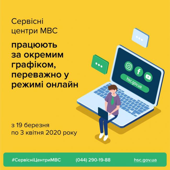 Так з 19 березня по 3 квітня 2020 року сервісні центри МВС тимчасово зупиняють прийом громадян і працюють за окремим графіком, переважно у режимі онлайн.