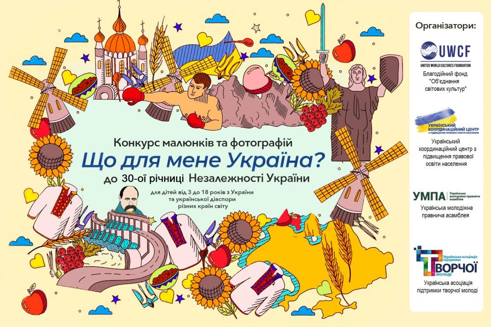 Стартував Всеукраїнський культурно-освітній конкурс малюнків та фотографій «Що для мене Україна?». Він приурочений до 30-ї річниці Незалежності України.