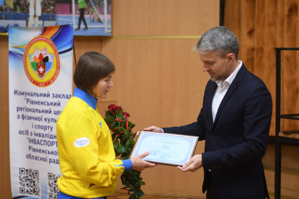 На честь цієї блискучої перемоги в Рівненському центрі «Інваспорт» відбулося урочисте нагородження. Заступник голови ОДА Ігор Павленко та заступник голови обласної ради Віталій Ундір особисто привітали спортсменів і вручили їм сертифікати на грошову винагороду.