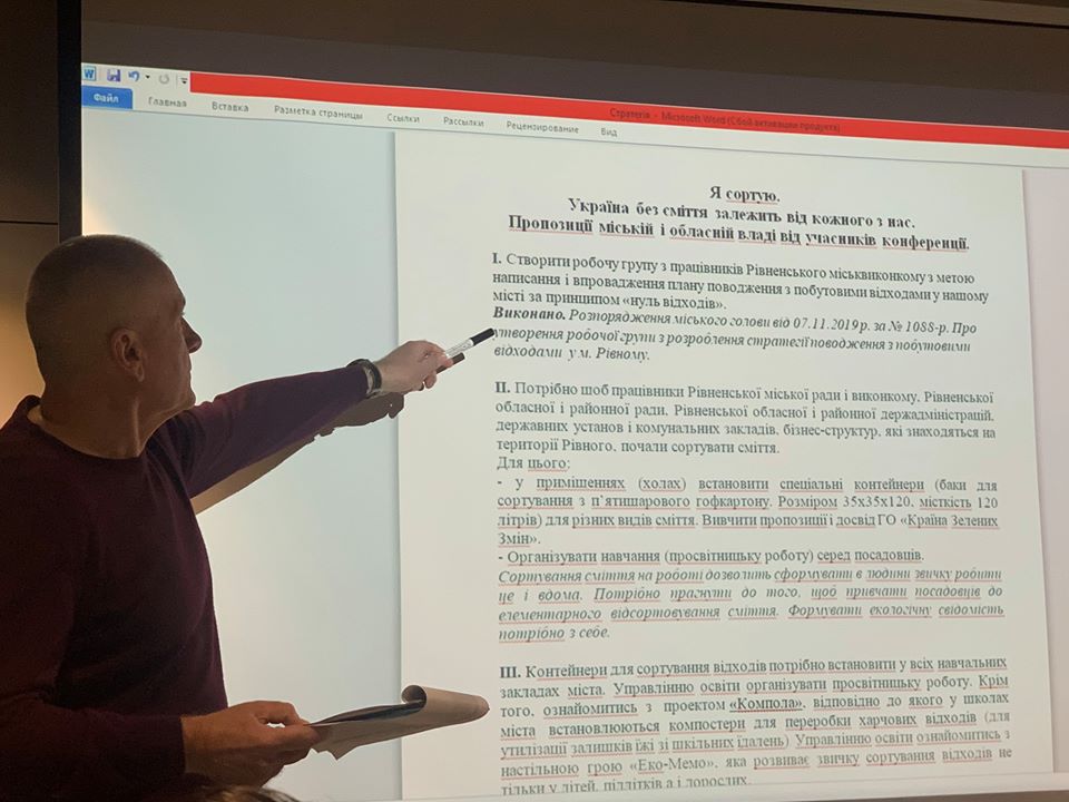 - наданні пропозицій щодо виділення коштів і проведенні конкурсу з професійної розробки стратегії поводження із побутовими відходами в Рівному.