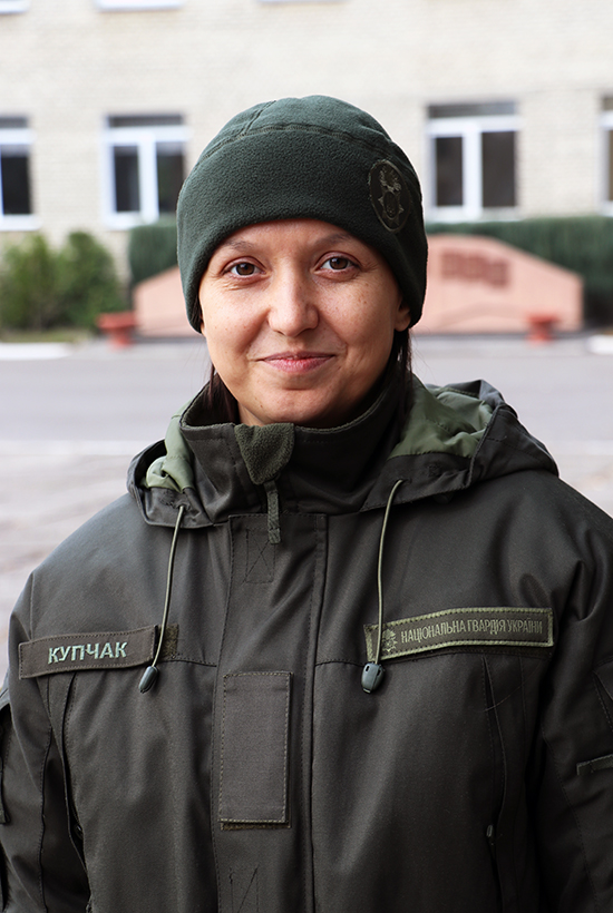 А от Купчак Ольга до армії прийшла вже морально підготовленою. Її чоловік теж військовослужбовець, щоправда у Збройних силах. Розповідав їй, що в армії все чітко і зрозуміло, тому страху не мала. До того працювала у держустанові економістом але без вагань одягнула оливкову форму.