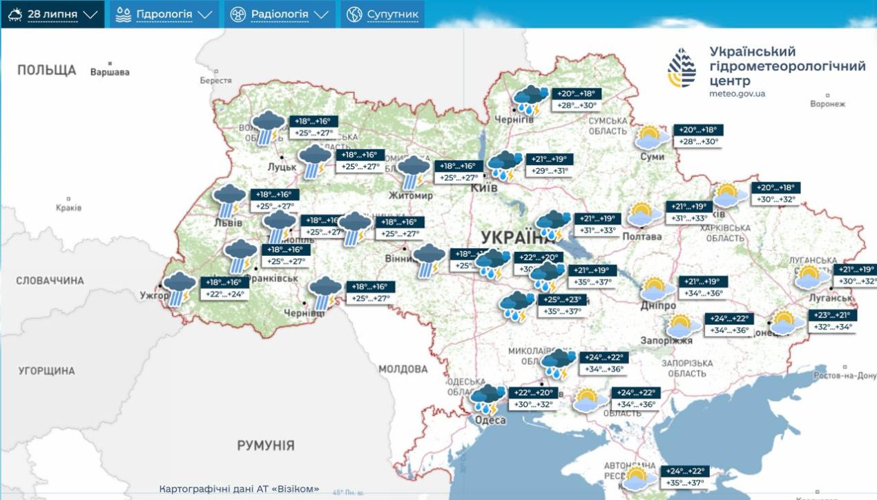 Синоптики прогнозують можливий град і шквали 15-20 м/с.