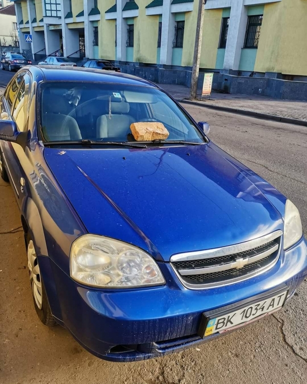 «Сюрприз» у вигляді цеглини на капоті – у Рівному (ФОТОФАКТ)