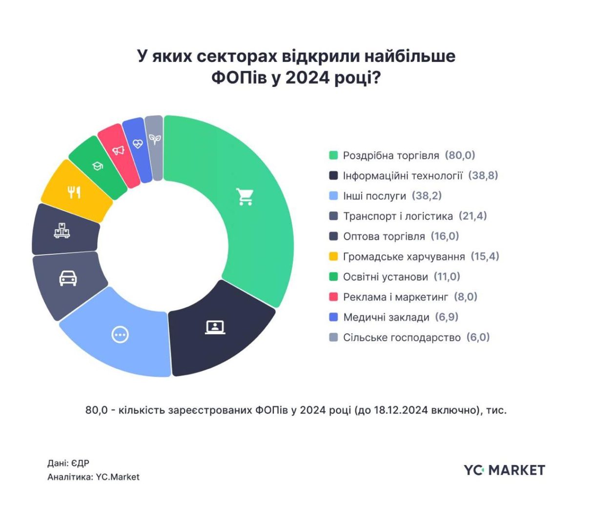 - роздрібна торгівля – 80 тисяч;