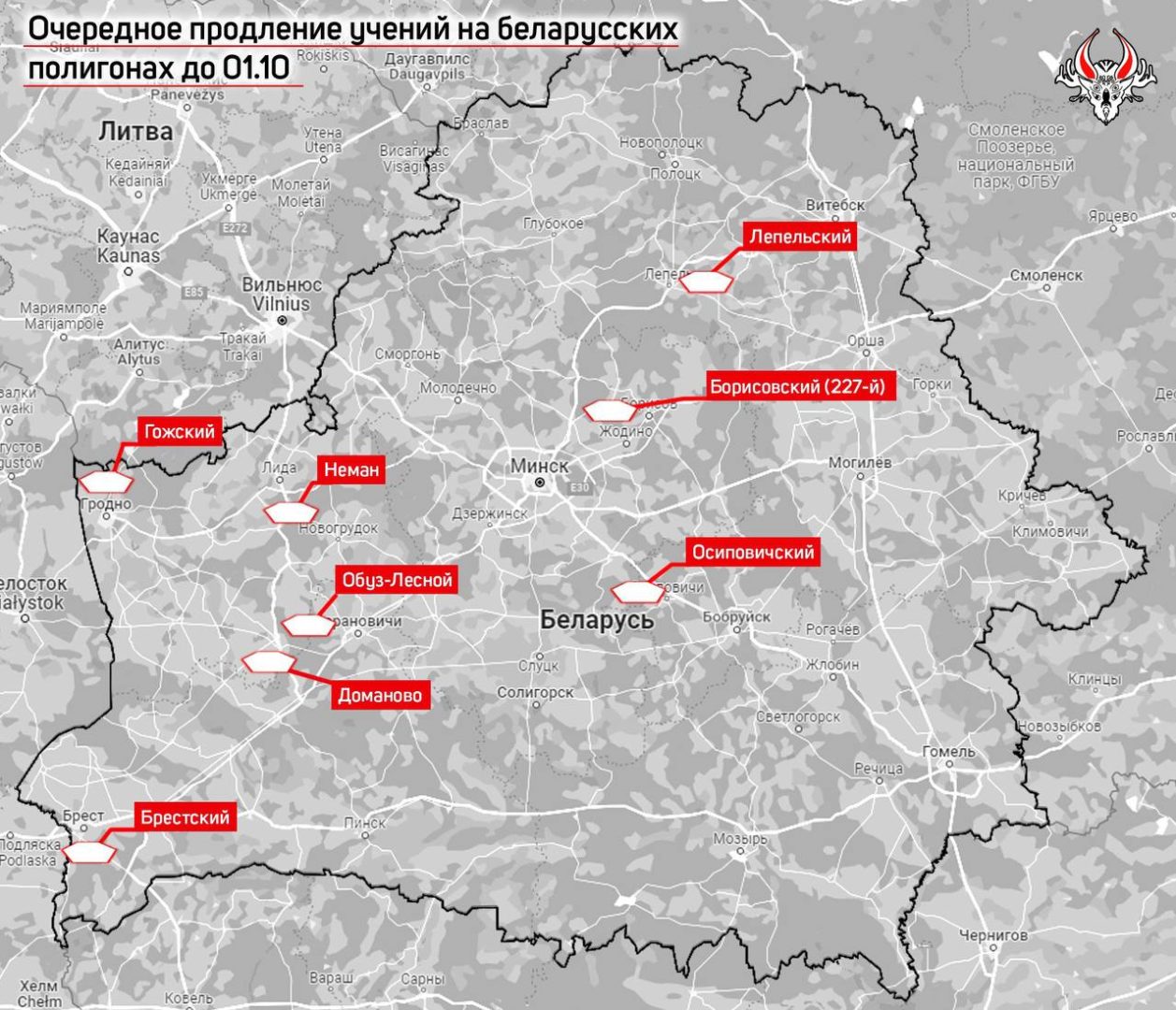 Навчання зс рб у білорусі продовжено як мінімум до 1 жовтня. Про це свідчить графік проведення навчань на білоруських полігонах, передає Беларускі Гаюн.