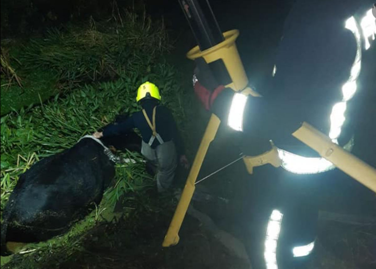 По вулиці Садова співробітники 5-ї державної пожежно-рятувальної частини надавали допомогу громадянам по підняттю корови з меліоративного каналу.