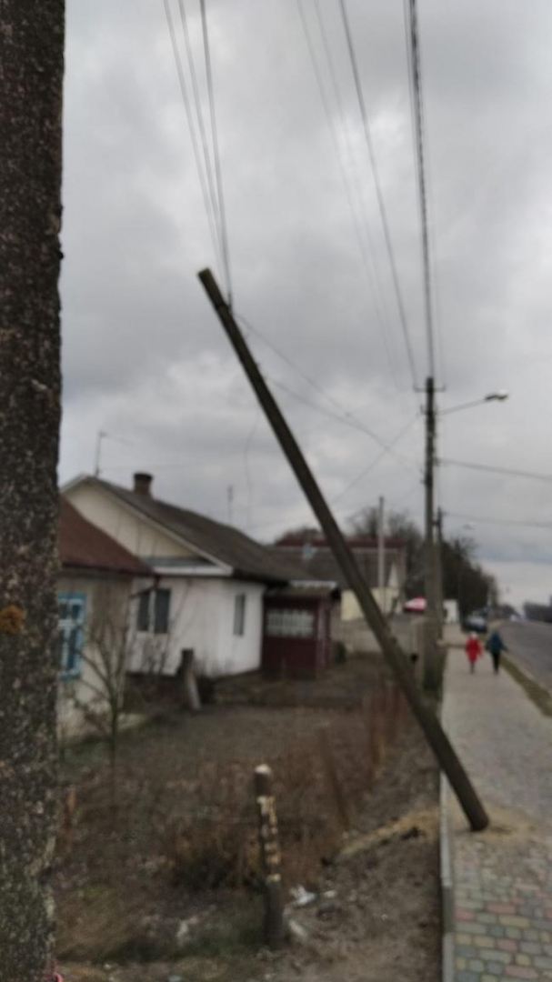У Костополі на дротах повис стовп і може впасти в будь-яку хвилину (ФОТОФАКТ)