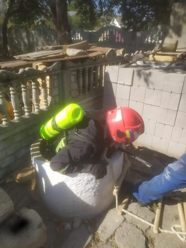 Надзвичайник за допомогою спеціального спорядження спустився у колодязь і дістав кота.