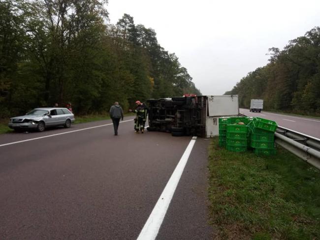У Рівненському районі перекинувся хлібовоз, який зіткнувся з Ауді