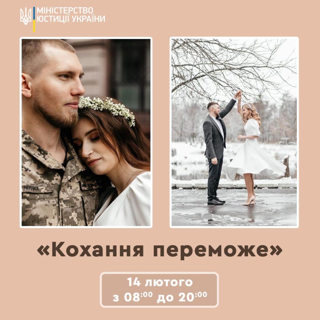 У Валентинів день, 14 лютого, у рамках заходу «Кохання переможе» Рівненський відділ ДРАЦС у Рівненському районі Рівненської області працюватиме дванадцять годин.