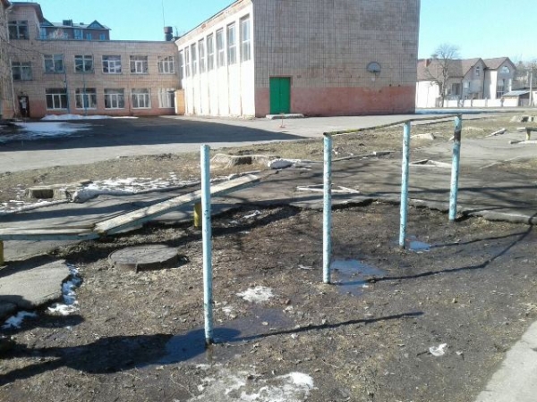 Спортивний майданчик школи №9 у Рівному неможливо використовувати для уроків.