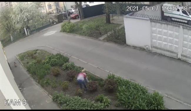 У Рівному камера зафіксувала, як дівчина крала квіти з клумби (ВІДЕО)