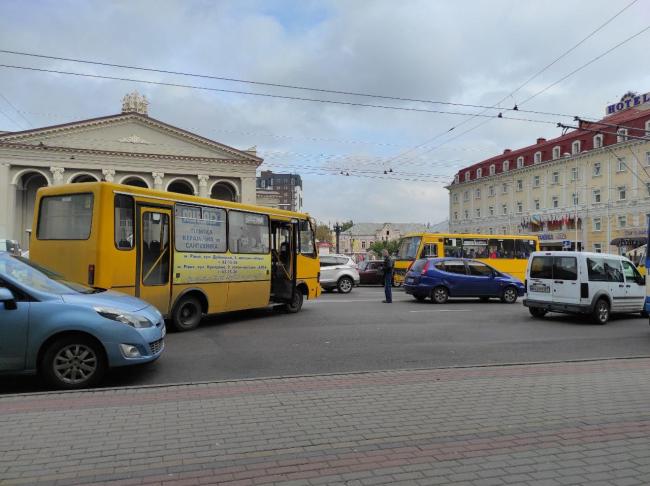 У Рівному на вулиці Соборній поблизу Драмтеатру маршрутне таксі №37 потрапило у ДТП.