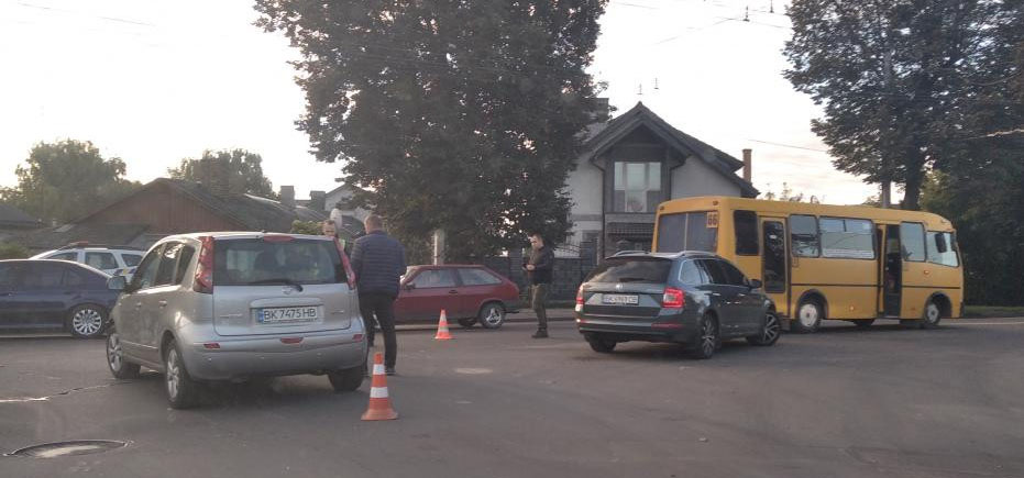 За попередньою інформацією, автомобіль Нісан, повертаючи ліворуч з вулиці Теліги, допустив зіткнення з маршруткою, яка рухалась за 66 маршрутом вулицею Дубенська. Автобус “зачепив” Шкоду, яка здійснювала поворот праворуч.