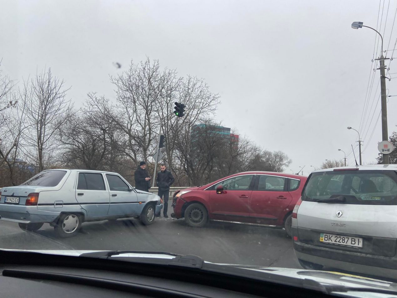 Сьогодні у Рівному, 6 грудня, на вулиці Степана Бандери зіткнулись два легковики “Slavuta” та “Peugeot”.