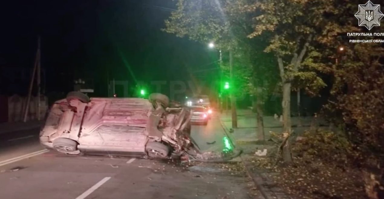 У Рівному нетверезий водій в’їхав у дерево та перекинувся