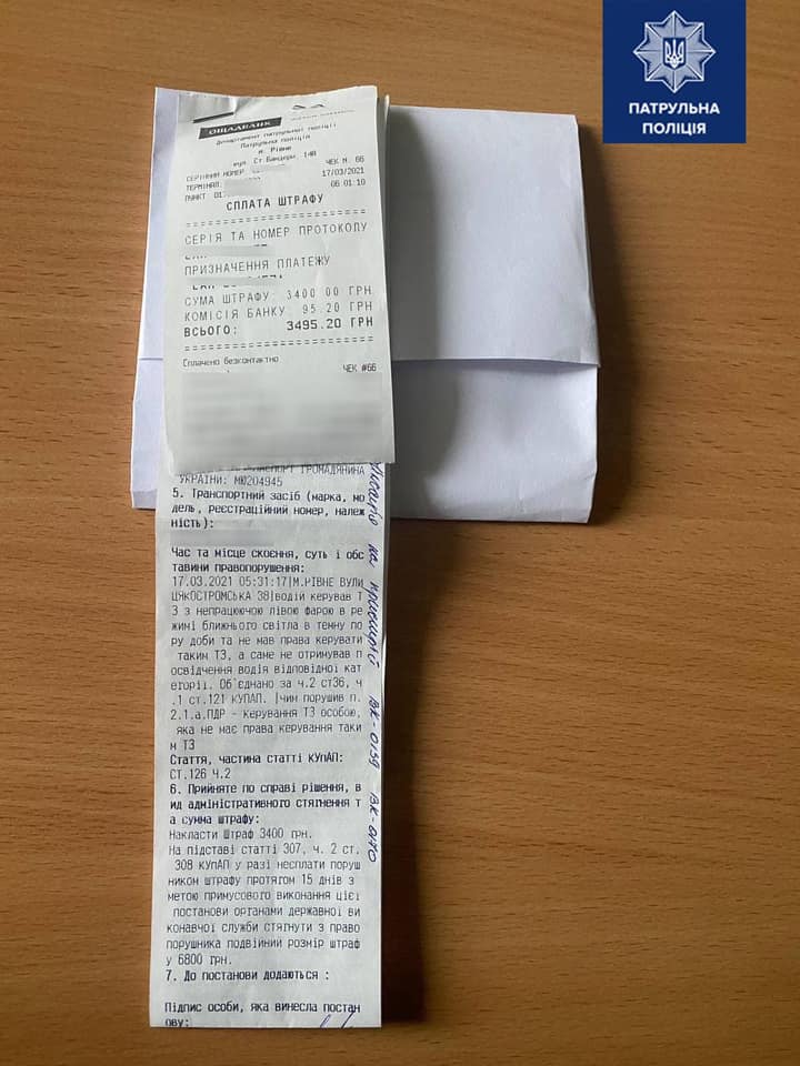Зокрема, у Рівному поліція зупинили водія, який кермував автомобілем без водійського посвідчення та порушив ПДР. Патрульні склали постанову на порушника – він отримав штраф у розмірі 3 400 гривень. Раніше його штраф складав би 510 гривень.