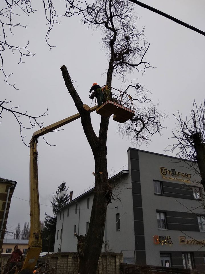 Сьогодні працівники тресту зеленого господарства працюють над очисткою та зрізанням аварійних дерев по вулицях Біла та К. Володимира.