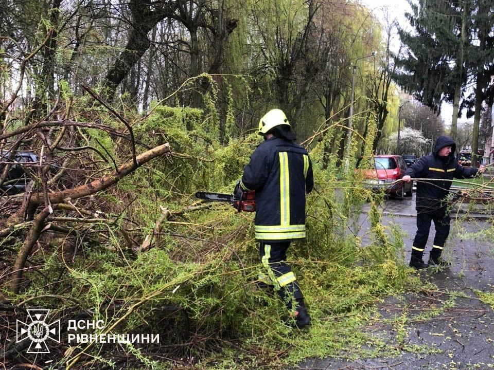 Рятувальники закликають жителів бути обережними під час погіршення погодних умов: уникати перебування поблизу старих дерев, не залишати автомобілі під гілками та дотримуватися правил безпеки.