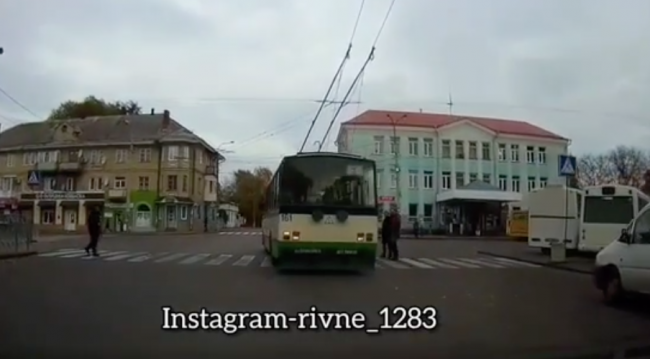У Рівному тролейбус проїхав прямо перед пішоходами (ВІДЕО)