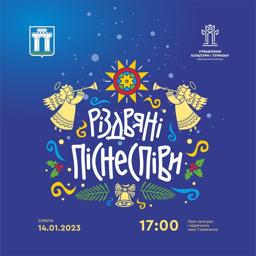 14 січня о 17:00 в Парк культури і відпочинку ім. Т. Шевченка приходьте послухати щедрівки та колядки від творчих колективів та артистів Міського Будинку культури та Рівненщини.