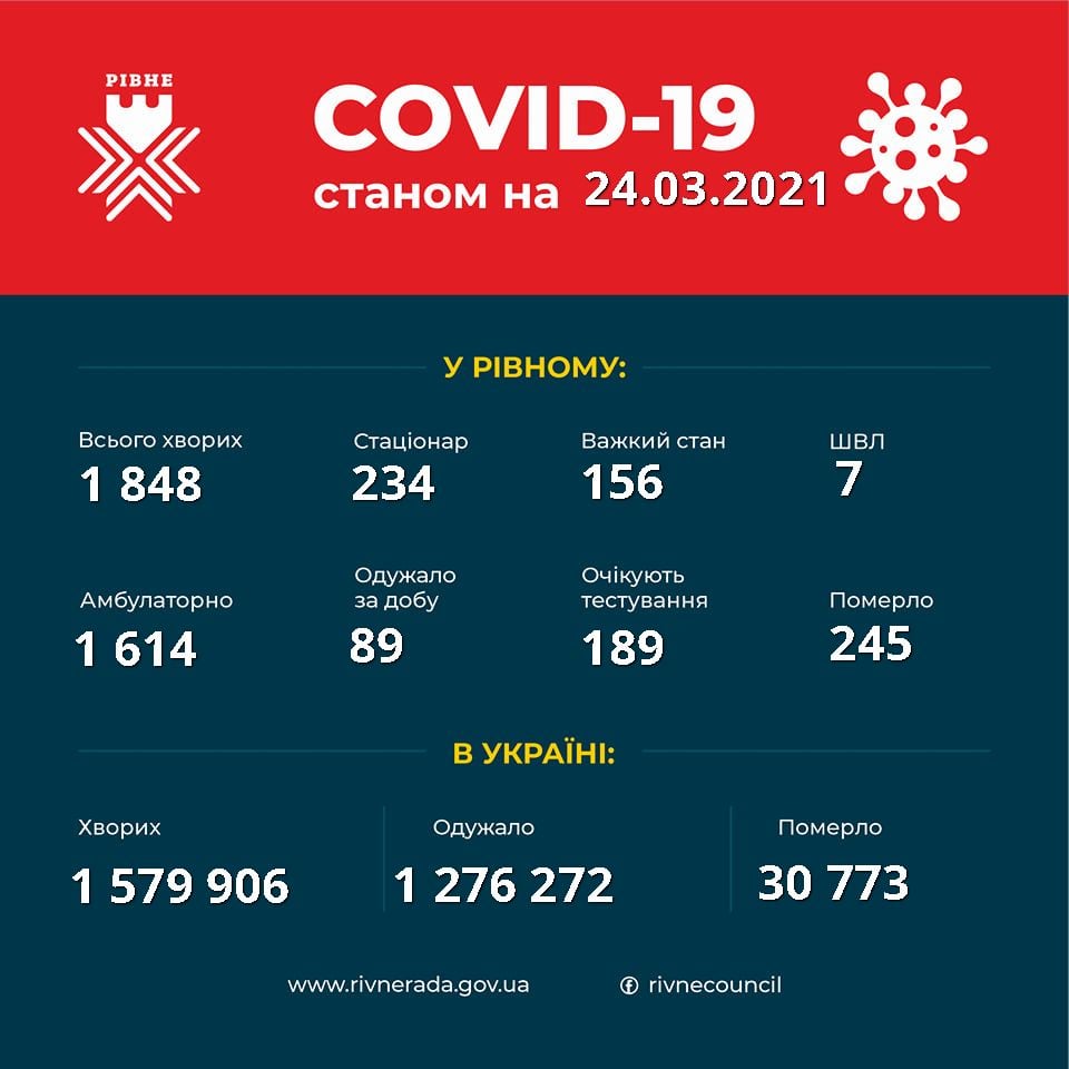 Кількість летальних випадків – 245. На жаль, за добу померла 70-ти річна рівнянка.