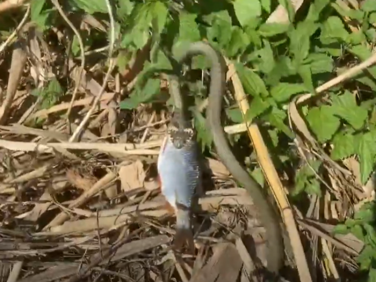 У Рівному зафільмували змію, яка зловила рибу. ВІДЕО