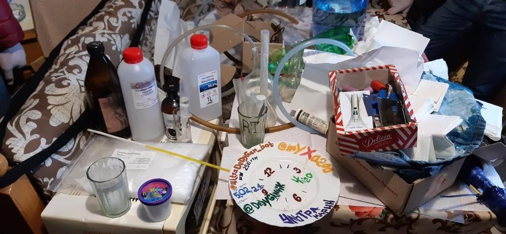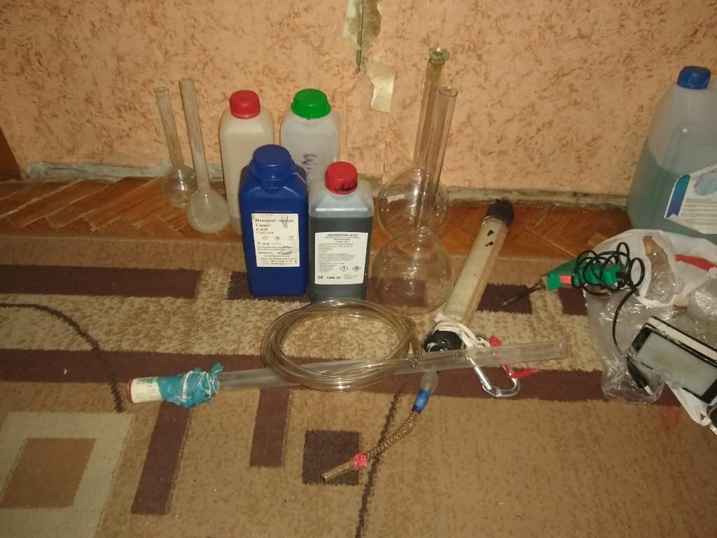 Було проведено 4 обшуки, під час яких було виявлено лабораторне обладання, наркотичні речовини, банківські картки та гроші, телефони та комп’ютерну техніку.