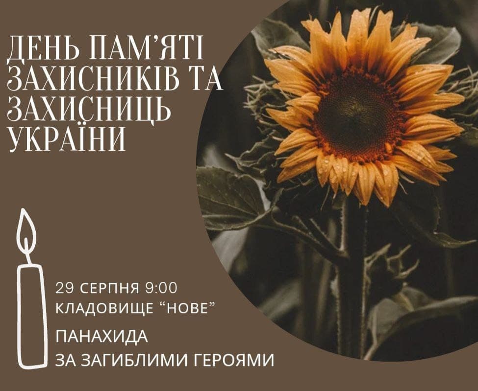 У Рівному, 29 серпня о 9:00 на «Алеї Героїв» кладовища «Нове» відбудеться панахида за загиблими та покладання квітів до могил Героїв Небесної Сотні, воїнів, які загинули в зоні АТО/ООС та всіх Захисників та Захисниць України.