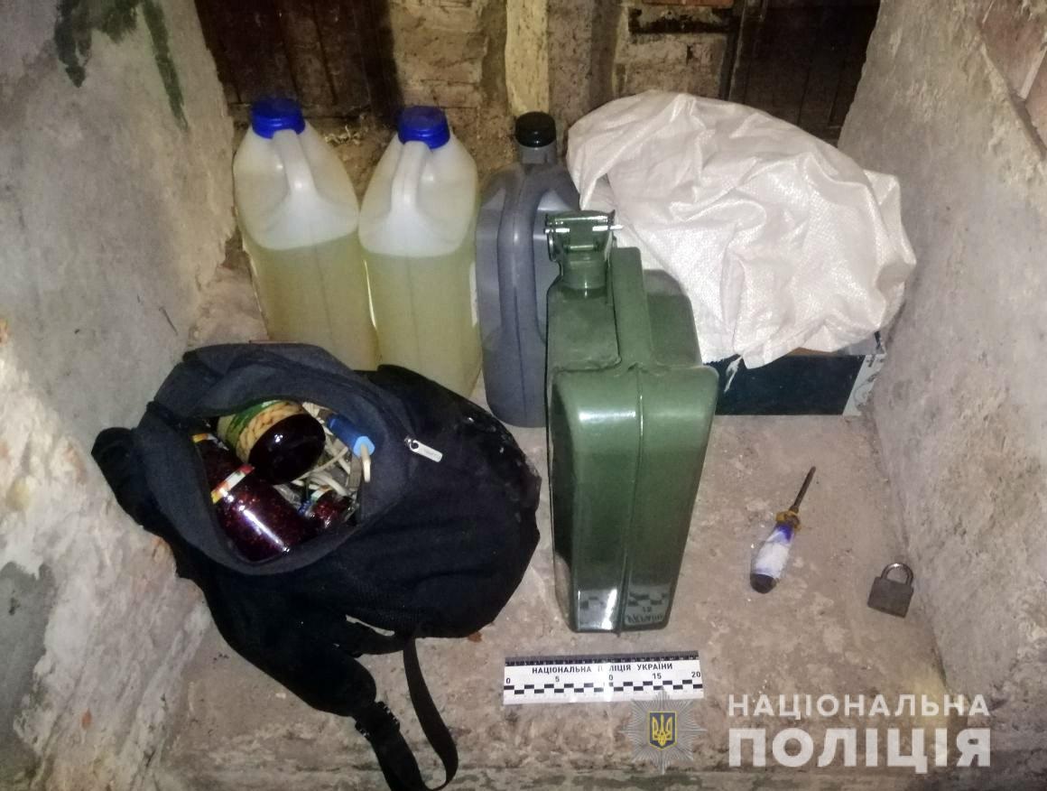 Інспектор-криміналіст під час огляду місця події вилучив докази його злочинної діяльності, зокрема: знаряддя вчиненого злочину, одну десятилітрову та три п’ятилітрових каністри із пальним.