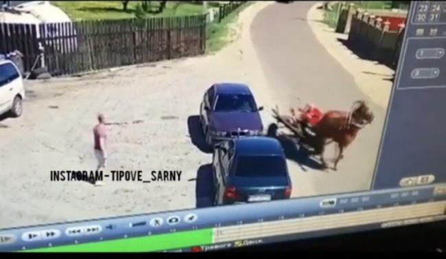 У селі на Поліссі гужова підвода протаранила “BMW” (ВІДЕО)